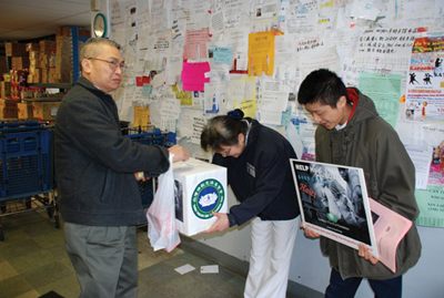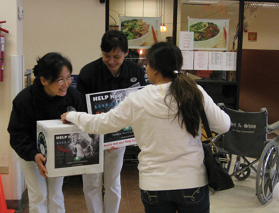 如果說一月十六日的募款是「在苦難中長養慈悲」,十七日的募款便是「在變數中考驗智慧」,因為當天是慈濟人早已訂好要到救世軍遊民收容中心關懷的日子,也要為收容中心裏的「更生人」和街頭遊民煮熱食,奉上三百五十份的晩餐。雖然為海地募款很迫切,我們也不忍看到遊民因為我們取消而失望。於是大家分工協力,有的先到廚房準備,另外六組人馬,上街頭募款後,連午餐也沒吃,下午又火速趕往收容中心,加入工作行列。