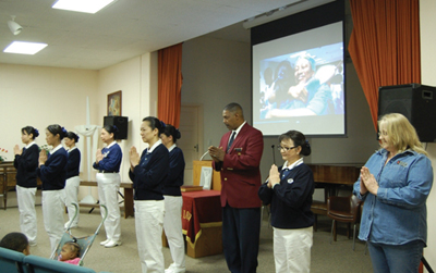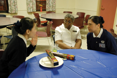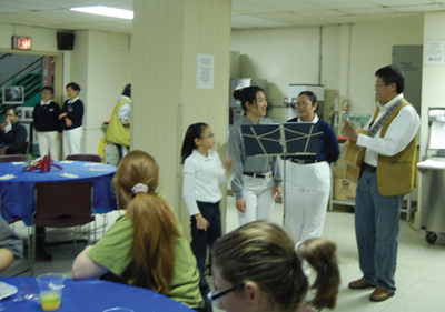 在開始發放、用餐之前,人文組準備了一個簡短的培訓(orientation),讓新加入的志工可以瞭解慈濟人文,及如何以謙卑、感恩的態度去付出,要讓接受者感受尊重。而莫師姐在收容所的小敎堂內,為住民介紹慈濟的四大志業,並提及最近在海地發生重大災難,比起災民我們已非常幸運,她希望大家能把握當下做個能付出的人。接著師姐們表演「愛灑人間」手語,收容中心的幾位工作人員也開心的一同參與。面對變化無常的人生道路,最後我們特別用「普天三無」這首歌來與住民們一起分享,希望鼓勵他們提陞追求生命意義的毅力和勇氣,當他們每個人舉起雙手跟著旋律擺動,心靈也跟著柔軟起來,離開時還有許多人雙手合十向志工致意。