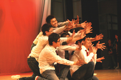 CSU三個中外學生演唱的小虎隊的名曲"愛"引來全場不少人的伴唱。CSU老虎舞蹈隊的表演出人意料,八個英俊大男生在台上表演了很多觀衆熟知的經典動作,如千手觀音、擦地板、芭蕾舞等,編排新穎,動作出其不意。他們夸張滑稽的表演讓全場笑翻,現場氣氛極其熱烈。