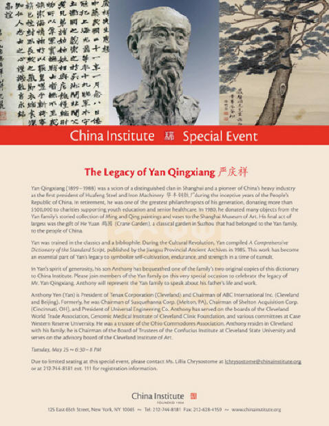 我的父親十九歲正式繼承父業,把大隆建成國內罕見的大型民營企業集團,在他退休後他分別向北京、南京、上海有關敎育及兒童、少年、老年基金會等福利事業捐款,金額總數達50余萬元。1980年,將清代朱耷行書《酒德頌卷》、古代朝鮮靑釉白花罐及明、清藏品等珍貴文物捐贈給上海博物館。1981年,又將早年在蘇州購置的古典名園“鶴園”捐獻給國家。