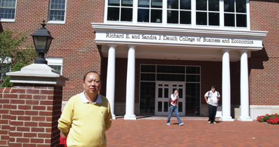 企城唐人街發展有限公司董事長中山市旅遊職業培訓學校執行理事黃紹佳先生在Ashland University大學商學院門口