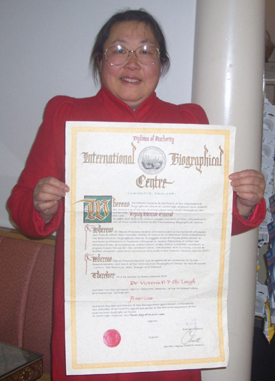我認識Victoria Chi- Lough 已經很多年了。她1982年來美國自費留學,她出生在朝鮮戰場上,她有一個驚人的人生創業故事,以後有機會我們會和讀  者分享。
