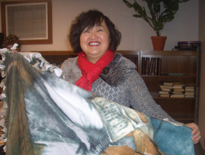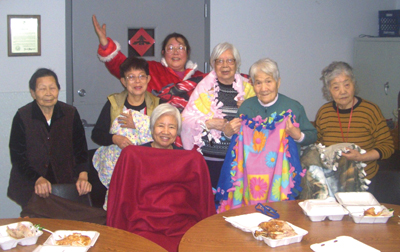 當日老人們將他們親自打的毛毯讓我交給亓女士,亓女士高興地説:她要將這些毯子送給那些沒有成年的單親母親,她感謝老人們回饋社區的奉獻精神。我看着大家歡喜和諧過節,情不自禁問老人新年有沒有需要伊利華報幫忙的,任老先生笑着説:他們平時喜歡打麻將的桌子壞了,希望新年有新桌子,我答應明日給常靑公寓送去。