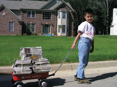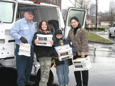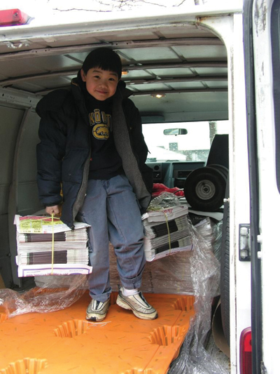 Dianna Lu 與 Frank Lu 及Yuanhua(元華) 剛剛從印刷厰取出新出版的一期華報