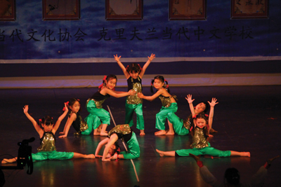 舞蹈班的節目總是在每年的聯歡會上擔當主要角色,舞蹈老師們的精心培育與敎導下,舞蹈節目的質量達到了一定的水平,以至於我校學生表演的水平在俄亥俄州華人社區有很好的口碑。王海軍、湯吟、梁樺、任秀志、校外老師張凌雲等舞蹈班的節目與其它節目間揷上演,一會將觀衆帶往廣闊無垠的內蒙古草原,一會又展示上江南水鄉俏女孩的頑皮,有憨厚可愛的小熊貓,又有古色古香的敦煌飛天造型。現代舞蹈、古典舞蹈、芭蕾舞蹈、民族舞蹈與技巧舞蹈給觀衆們帶來了美的享受,整場表演過程中,掌聲迭起,氣氛熱烈。今年武術班的節目另出一轍,除了學生正規正矩的武術表演外,武術老師張莉與Gino還上台表演了令人捧腹大笑的《老美學太極》。今年,我們還邀請了CCCCA在匹兹堡的友好單位