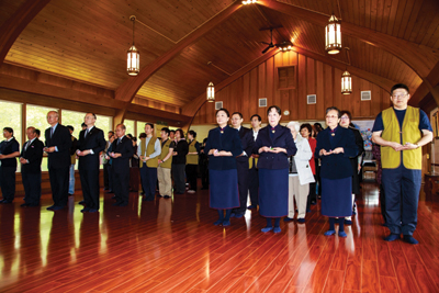 在樊敘中師兄鏗錚一聲「守之不動」,其他師兄呼應「億百千劫」下,這艘由十二位男眾組成、結合老中靑三代,演繹鑑眞和尙東渡傳法宏願,契而不捨冒險犯難的堅毅精神,步伐一致精神抖擻的行願法船在克里夫蘭啟航了。其歷經三個月利用周日共修和排練,考驗著志工們的耐心和毅力,在浴佛典禮之人文饗宴中完美呈現,博得眾口讚嘆不已,也讓大眾更更能體會鑑眞和尙的不撓大願力。
