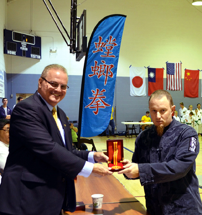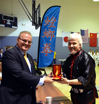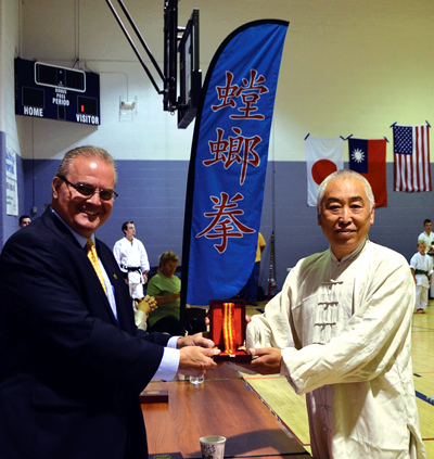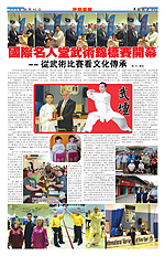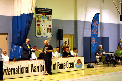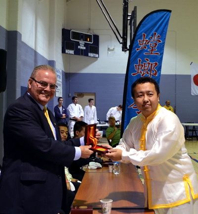 武術比賽給各國武術愛好者提供了一個加深理解、增進友誼的好機會。比賽場館的內外,隨處可見各國參賽選手在互相交流、切磋技藝,他們雖然有些語言上的障礙,但是踢、打、摔、拿、跌等武術形體語言完全可以彌補這方面的不足,保證交流的順暢。當日Fairlawn的市長William