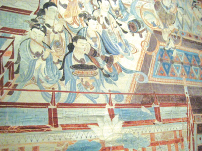 邵芳臨摹的一幅《西方凈土變》,畫中有120個菩薩,耗時兩月。這幅張大千想畫沒有畫成的作品,受到常書鴻所長和全所同仁的稱讚,50年後,瀋陽魯迅美院敎授李浴對此仍記憶猶新。