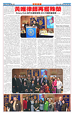 Cleveland)給克利夫蘭著名律師黃唯頒發了2014年國際服務奬,獲得這種榮譽的獲奬者必須是各個方面優秀出衆,爲社區做了許多貢獻的人。