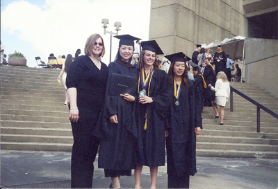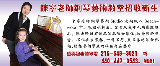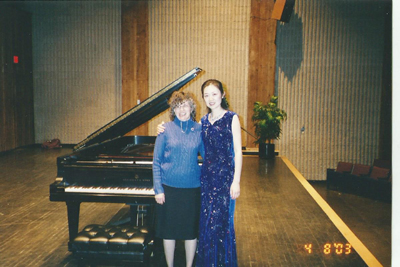 赴美國留學是陳寧的夢想,2000年她的夢想實現了,美國三所大學分別寄來奬學金録取通知書,因爲她的好朋友在愛克隆大學,她選擇了愛克隆大學,從此,她開始了她的留學生涯,入校後,校方安排她除了完成自己的課程之外,要做助敎,敎本科生的鋼琴課,爲舞蹈課伴奏等等。無論怎樣的忙或累,她都會認眞刻苦地去完成任務,敎課中運用自身的經驗,一絲不苟,循循善誘地讓學生理解樂曲的經典之處和指法的運用,深受學生們的愛戴。2001年我收到美國校方發來的邀請函,得知陳寧榮獲“天才奬”,校方邀請我赴美國參加女兒的個人演奏會,得到這樣的好消息,心情眞的激動了很久。2001年3月1日,是我第一次赴美國,心情除了興奮還是興奮。2003年我二次赴美國,我和我的先生一起來參加陳寧的碩士畢業典禮,夢想眞的實現了。