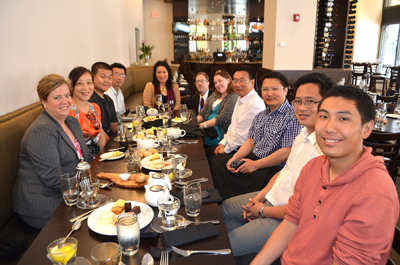 這次廣西師範大學黃副院長一行只有在克利夫蘭停留了2天,黃副院長表示他對克利夫蘭有很深的感情,早在2011年,黃副院長來克利夫蘭訪問,他一下就喜歡這個城市,並且回家做兒子思想工作,黃副院長的兒子現在已經在克利夫蘭大學就讀3年,目前就讀化學系博士,明年畢業。黃院長十分開明對本報記者説:留美國回中國讓孩子自己決定,因爲到那里都一樣做學術,目前中國對外海歸人員的政策眞是太優惠了。