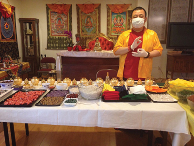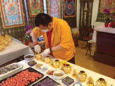 札瑪法王這次特別高興完成他心中許的願:製作200個寶瓶。根據儀軌的每樣奇珍異寶、法物皆在短短時間內軽而易舉的收集完全!諸眾佛殊勝的磁場加持力令上師讚嘆不已!