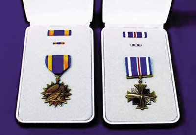 吳其軺捐贈給中國人民抗日戰爭紀念館的美國“飛行優異十字勛章”和“航空勛章”。