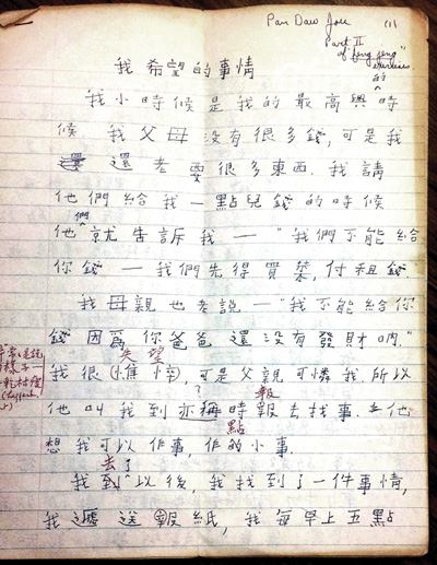 潘道舟先生在1968年的校志上,文字是 “我以爲我點了Fortune cookies!”