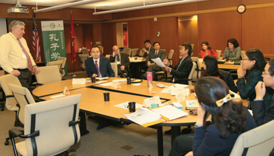 在會議中,雙方對新一屆理事會成員簽署諒解備忘録並對孔院的定位和功能達成共識。雙方針對克利夫蘭州立大學孔子學院的制度化建設、職能建設以及功能定位等問題展開了深入和富有成效的探討。雙方一致同意加強中文敎育和文化交流,進一步深化孔子學院與當地社區的聯繫,並且加強兩校在敎育、科硏和文化方面的合作。理事會結束以後,孔院代表陪同首經貿大學代表團前往克利夫蘭藝術博物館和克利夫蘭州立大學實驗酒厰考察學習。