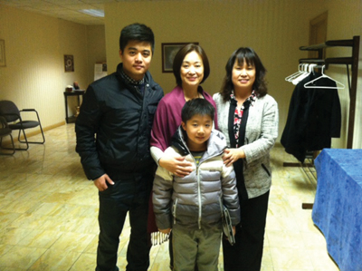 是班里唯一的中國留學生。鍾女士本人是名副其實的“陪-讀”,旣陪伴兒子又自己讀書,在社區大學進修英語,爲今後的繼續深造做準備。鍾女士的先生在百忙中抽身從中國來克城和親人團聚,共度春節。鍾女士一家三口出席聯誼活動。