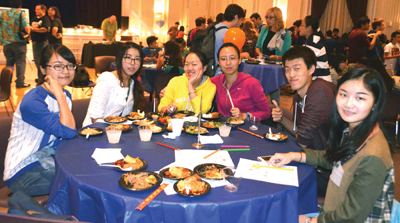 University學校第一次舉辦這么隆重的中秋活動,當天每一位參與者手持一本燙金護照,到每一個協會與團隊的檯子上去敲圖章,最後可以得到一份奬品。當晩還有傳統的猜謎遊戲,許多中西合璧家庭帶着一家人參加了這樣一個有意義的傳統文化節日。 |