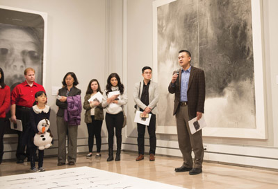 展覽開幕當晩,克利夫蘭州立大學畫廊總監Robert Thurmber致開幕詞,並介紹了策劃人李倩敎授。隨後李倩敎授介紹本次展覽的藝術顧問錢志堅博士,並請錢敎授就參展藝術家的作品進行了近1小時的現場講解。錢敎授曾擔任過紐約帕森斯設計學院藝術史敎授,他是藝術史家、批評家、策展人和翻譯家,曾經策劃過很多當代藝術展覽。作爲本次中國當代藝術展的學術顧問,他參與了參展藝術家和作品的遴選以及展場的佈置,並爲這次展覽的畫冊撰寫了評論文章。觀衆們對他精彩絶倫的講座讚不絶口,意猶未盡。克利夫蘭州立大學孔子學院周海剛院長隨後也做了現場發言。出席當晩開幕式的嘉賓還包括克里夫蘭文學與社會科學學院的Gregory