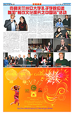 严云泰代表中国文化园协会致辞,他感谢此次活动对中国文化的推进,代表该协会向孔子致敬,重点介绍了中华文化园的大型孔子雕像和孔老夫子的教育理念。徐岩和张旭红代表孔子学院介绍了学院基本情况、教学项目及其品牌文化项目,重点介绍了由刘延东副总理、美国国会议员玛西娅·富奇和国家汉办共同资助的美国高中生赴中国的汉语桥夏令营项目、孔子学院奖学金项目以及近期即将举办的春节庆典活动,引起了大家的共鸣。