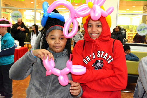 图:学生展示自己的气球头饰!