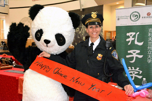 当地时间1月26日,克利夫兰州立大学孔子学院在学生活动中心举办了新年庆祝活动。孔子学院外方院长徐岩和中方院长张旭红出席活动。