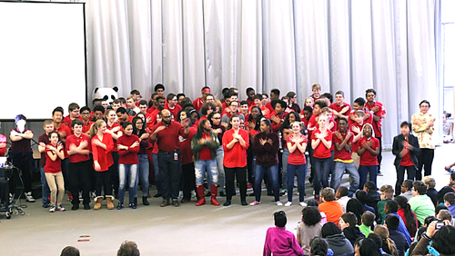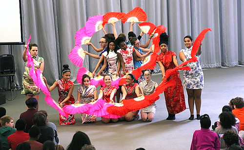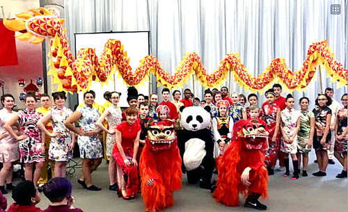 自从在STEM中学任教以来,我尽个人最大的努力,作为传播中国文化和语言的使者,从未停止过和这帮孩子分享中国博大精深的传统文化。自2012年来,每年春节,我们全校师生家长都会一起热热闹闹地庆祝中国新年,90分钟的文艺节目都是由学生主持表演;我一个人负责从策划节目、服装、音乐声控、主持稿编写、邀请贵宾兼导演的责任。节目以后,所有中文学生都会美美地享受我从中国饭店购买的中国菜肴。中国春节这一天是我们这些市区年轻孩子最开心的一天,也是所有五、六年级学生最向往的一天。