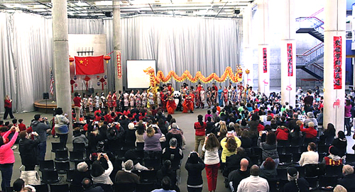 —让八年级的孩子装饰整个学校,不仅秘书办公室、校长会议室、电梯、七年级和八年级走廊、教室、表演大厅、楼梯,就连餐厅都是孩子装饰的场所。整个学校张灯结彩,沉浸在一片火红、热闹、温馨的氛围中,不时可以听到我的学生说“新年好”“恭喜恭喜”。今年鸡年可以说是我们庆祝中国春节以来最成功的一年。1月27日中国新年前夜,早上的晨会所有中文学生起立欢唱“新年好”拉开了鸡年庆祝的序幕。学生中饭以后,我近200个十二三岁的学生用民族歌曲、秧歌、扇子舞、伞舞、红稠舞等各种民族舞蹈方式,武术、器乐演奏、广场舞、民族服装和旗袍走秀等喜闻乐见的形式,让全校师生和近200个家长以及社区朋友近距离地感受到了中华传统文化的魅力,亲身领略中国文化的深厚底蕴。在近100分钟的文娱节目中,锣鼓宣扬,舞狮戏龙,学校的大厅内掌声、歌声、欢呼声汇成一片欢乐的海洋;我们全体师生和来宾再一次以万分激动的心情庆祝了中国鸡年。我相信这种形式的现场文化表演比我在教室上一节100分钟的文化课更有感染力;这种大型文化活动也会在潜移默化中提高美国学生对中国语言文化的兴趣和理解,给他们留下深刻的印象。作为全校唯一的一个中国人,看着祖国鲜红的国旗在主席台上飘扬,所有中文学生无一不着红,人虽不在祖国但却深深感受到了庆祝中国新年的喜悦。当时我深深体会到作为一名中文老师和一个中国人的欣慰和光荣,近一个月以来为准备庆祝新年活动的疲劳和紧张感也烟消云散、一扫而光,我又骄傲了一回。让我联想起学生最喜欢的中国人-成龙在中央电视台春节晚会上唱的歌:家和国。我们一个小小的中学何尝不是一个小小的国,不是一个大大的家呢?这天,中国新年的这一天,所有人的愿望都是一样的:要把中国新年办得成功,办得热闹。今年的鸡年也是教师职工参加人数最多的一年,我有八个老师和学生一起参加了演出。明年我打算邀请更多的同事参加表演。这些大人和孩子一样,兴奋、激动、紧张地度过了100分钟。