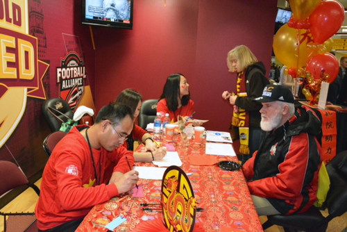 随着骑士队获胜的欢呼声,迎新春活动缓缓落幕。在孔院展位前驻足过的观众朋友再次用不是很标准的中文对孔院教师说:“谢谢你们,再见”。简单的问候,透出了中美之间的真挚友情。
