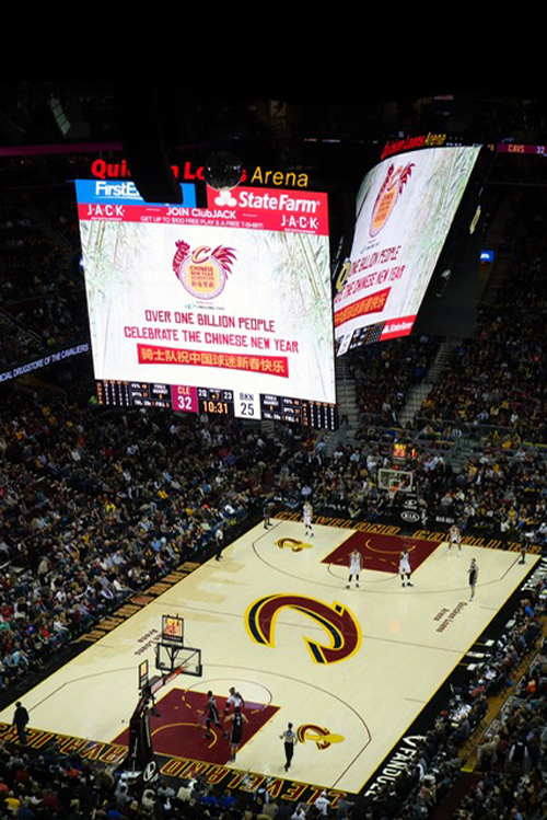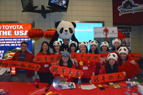 常规赛事,在骑士队主场速贷球馆启动,三万多名观众见证了中国传统农历新年与美国流行文化篮球赛事的再次牵手。克利夫兰州立大学常务副校长并孔子学院理事朱建平、孔子学院理事长严云泰、外方院长徐岩、中方院长张旭红率孔院全体教师共同参加活动。