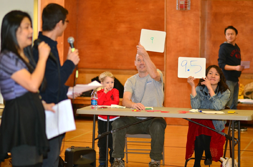 Riley 先生,實在傷透了腦筋。但每一次舉牌給分時,觀眾們也都給予了最熱烈的歡呼。最後也感謝TECO芝加哥辦事處和僑敎中心的贊助,所有的參賽者都笑呵呵地領到了獎品,滿載而歸。現場就在顧老師的歡樂氣氛帶動下,圓滿結束。