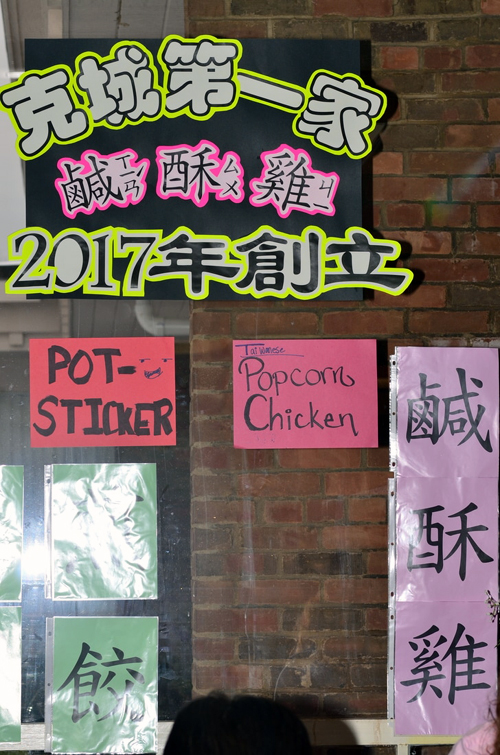 節目表演之後,就是大家日夜所期待盼望的夜市小吃及遊戲。以往幾年來一直都人氣十足的的攤位,如檯式牛肉麵、珍珠奶茶以及彈珠汽水等,今年也不例外。連份量充足的肉羹湯也撐不了多久,很快就被一掃而空。另外,今年也新增了更多的傳統菜色,如台式鹹肉粽、台灣夜市熱門的現炸鹽酥雞、手工元寶煎餃、餛飩皮炸年糕等等,讓我們的夜市小吃顯得更美味豐盛。穿梭於來來往往的人群之中,彷彿置身於台灣夜市,一道道精緻的美食,滿足了一張張遊子的嘴,緩解了異地人們的思鄉之愁。