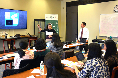 司迪寿春在美国有八年的中、英文教学经验,是克利夫兰州立大学教育学院中文硕士项目实习督导,负责对研究生教育实习状况进行评估,具有丰富的培训经历。她根据自己的教学经验与孔院教师们分享了中文游戏教学方法及评价方法,带领老师们体验了如何通过丰富多彩的游戏,提高对中文的学习兴趣。同时,她使用真实的教学案例展示如何设计教案,鼓励大家在教学过程中从教学目标、评价标准和教学环节等方面精心设计教案,达到有效教学的目的。