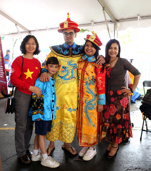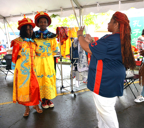 络绎不绝的人群对中国和中国文化表现出了深厚兴趣,试穿中国传统服饰环节非常受欢迎。我们不仅提供了中国不同朝代的传统服饰,也展示了中国部分少数民族的服装。不分男女老幼、不分民族和国籍,很多游人兴高采烈地试穿中国皇帝、皇后服装,在孔子学院旗旁边摆出各种姿势与家人、与朋友留住美好瞬间;一对年轻的小夫妻,带着大家庭里的五个小朋友来感受亚洲节,他们穿上了中国不同朝代不同民族的传统服饰,在亚洲节照相背景墙前留影纪念;穿汉服的与穿唐装的并肩站着,穿壮族服饰和中国风红纱裙的小姑娘们莞尔一笑,还有一个蹒跚学步的小不点撑着一把油纸伞云里雾里的看镜头。这跨越时间空间不同的中国传统服饰放在一起竟不显突兀,反而增添了一份略带幽默的和谐。