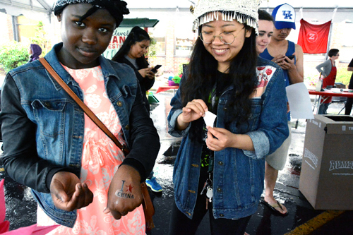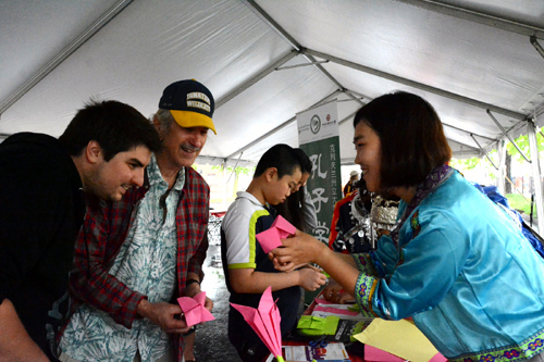 中国特色的幸运饼也赢得了民众青睐,他们不仅亲口品尝了中国美味,幸运饼内的幸运字条,还让他们见识了中国方块字和拼音,也让他们尝试着说中文;展台上的各种中国特色小贴纸,吸引了很多小朋友,他们纷纷伸出小手和手臂,贴上中国生肖贴、中国地图贴、中国国旗贴,他们带走了漂亮的贴纸,同时也留下了满意的笑容。不少游客也驻足孔子学院的展台学习折纸,包括灯笼、蝴蝶结、及百合花等等。