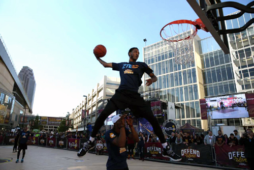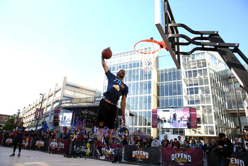 期待總決賽的成千上萬球迷正聚集在此享受另一場特別籃球盛宴-- 花樣扣籃!