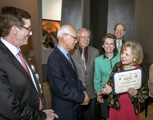 Joseph Degenfelder) 颁发了感谢证书,感谢他们向克利夫兰艺术博物馆(http://www.clevelandart.org)设立专项基金,用于每年主办一场大型的、世界水准的免费面向公众的介绍中国文化和中国艺术的讲座。孔子学院理事长严云泰率美方院长徐岩、中方院长张旭红及十余名汉办教师聆听了这场讲座。