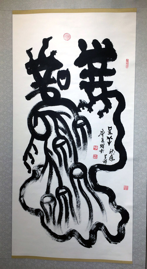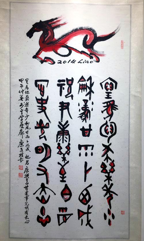 診所來了許多洋人觀賞他的書法,讓這位78歲的廖先生感嘅萬分,他將中國甲骨文應用與創新書法相結合,兩個小時的演講與書法現場表演,讓我們親眼目睹了這位廖先生的風採,他讓生命活得有意義,眞是太了不起。