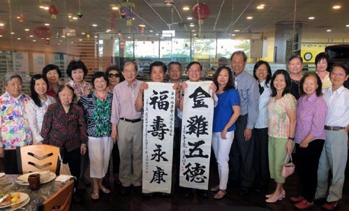 廖進財先生每一次從台灣來美國看女兒,總是將他愛的書法與大家分享,6月22日,他女兒女婿Twinsburg