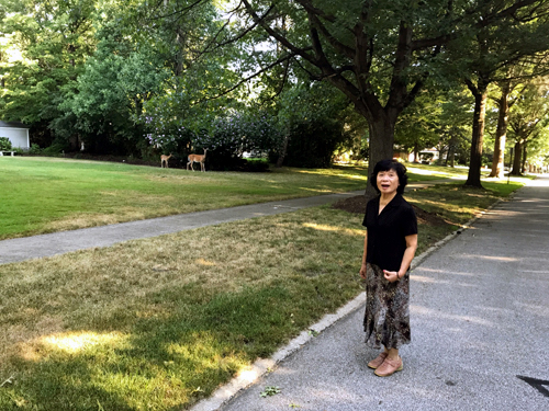 凌晨三點她還提醒我:早上5點到7:00是早供,萬一我們睡着了沒有起來就11點午供。早上供佛完後,她堅持要散步,我們走在她的社區,安靜整潔乾凈的小區,我們看到了2只鹿,它們像似給我們問候早安,那一刻幸福喜悅在心頭,我看着Irene對她説:您爲天做事平安無事。