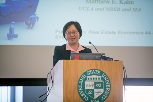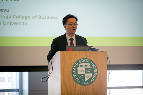 9月27日,由首都经济贸易大学和克利夫兰州立大学联合主办的第四届“中美经贸论坛”在克利夫兰州立大学举行,中外专家学者围绕“中美经贸发展问题中的房地产金融问题”这一主题进行了深入研讨。克利夫兰州立大学副校长辛迪.斯科卢贝(Cindy Skaruppa)、首都经济贸易大学副校长孙昊哲、克利夫兰州立大学商学院院长桑贾伊.普特鲁(Sanjay Putrevu)等出席并致辞,论坛由克利夫兰州立大学金融系主任周海刚教授主持。