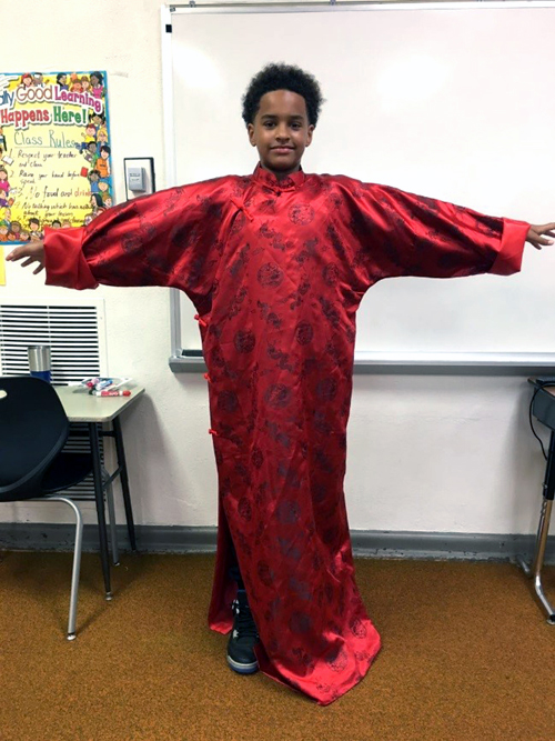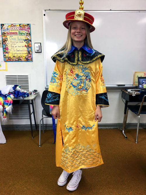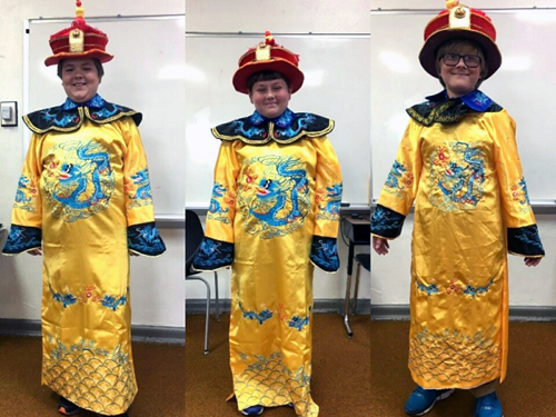 接下来,满族小皇帝们粉墨登场,大家看看,是不是还真有一股皇家气势呢!值得一提的,我们还有一位“女皇帝”。她特意说明,“金老师,我是女Emperor(皇帝),不是Queen(女王)。”