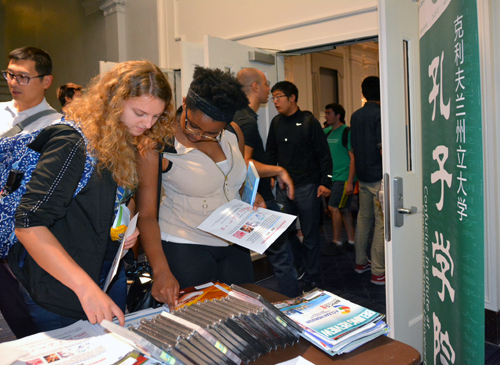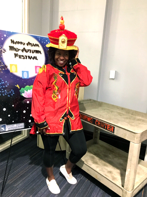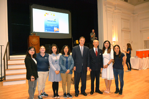 Yen)、孔子学院中方院长张旭红及部分孔子学院教师应邀参加。此次活动是为了庆祝广泛流行于中国、日本、韩国、新加坡、泰国等亚洲国家的传统佳节中秋节,旨在通过亚洲食物、游艺活动等营造出如家般的节日氛围,两个小时的活动吸引了大批在校师生和社区民众的参与。活动以中文歌曲作为背景音乐,不仅提供亚洲食物,还安排了派发月饼的环节,现场始终热闹非凡。
