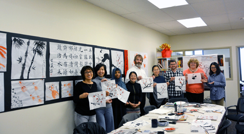 当地时间11月14日,伴随着艺术创作课上学员们的作品的问世,克利夫兰州立大学孔子学院秋季学期中国艺术实践课温馨落幕。本期实践课从10月17日开始,孔子学院教师李顺琴、丁笑丛分别开设了国画和篆刻工作坊,前后共授课八次,吸引了克利夫兰州立大学的师生员工和克利夫兰社区居民100余人次参加,受到一致好评。