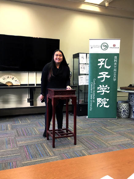 克利夫兰州立大学孔子学院汉办教师在本科中文课程学生成绩评定中进行积极创新。丁笑丛、李顺琴两位老师分别担任两个不同层次班级的课程,她们充分结合美国外语教育委员会提出的五个C标准,设计使用个人语言和中文才艺展示、跨班级层次合作表演语言剧两种形式,对学生的中文语言应用能力进行了全方位的综合考查。