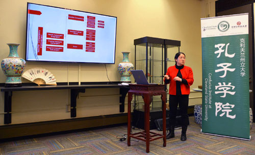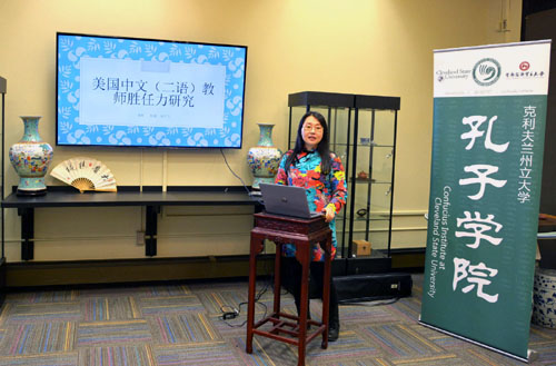 当地时间12月11日下午,克利夫兰州立大学孔子学院举行“教师胜任力研究项目”开题报告会。此次开题报告会是克利夫兰大学孔子学院为推动北美汉办教师专业发展、提高教师培训和指导实效而进行的科研创新和突破,旨在以胜任力为着眼点、探讨汉办教师应具有的职业素质和目前的差距、找到一条全方位提高汉办教师综合素质、充分胜任工作的可行之路。“教师胜任力研究项目”包括三个二级版块:需求分析、应对措施、评估和评价,每个二级版块下又包括了15个三级子课题。目前启动的是前两个板块中的六个课题。