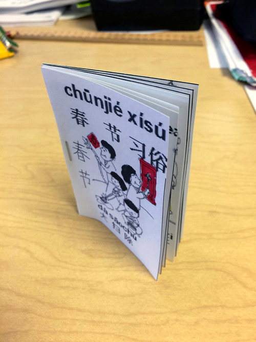 颜色在课堂上可是不可或缺的角色,深受小学生喜爱,我利用学生这个年龄特点,将春节习俗打印成涂色卡,让学生涂色并制成一本小的连环画口袋书,这样,他们也可以在课下随时翻看,了解春节习俗。并且可以讲给家人朋友或周围其他人听,增强学生的成就感,同时使汉语和中国文化有了更多的传播途径。