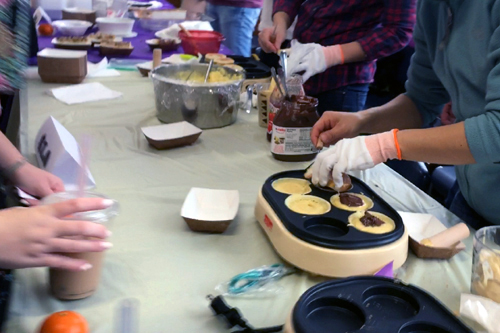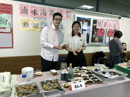 表演大會結束之後,緊接而來的就是大家期待已久的夜市小吃。每年,學校的老師和家長們,總是卯足了全力,為大家準備了豐盛的佳餚。除了歷年來大受歡迎的牛肉麵及珍珠奶茶之外,今年又增加了碗粿、現做車輪餅、及各種口味的蛋餅。藉著一道道琳琅滿目的台灣經典美食,將大家拉回台灣過年時節的氣氛,讓身處異地的遊子,一解思鄉之愁。