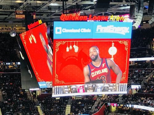 美國東部時間2月27日(周二)晩7點,美國俄亥俄州克里夫蘭市NBA聯盟騎士隊主場速貸球館洋溢着中國農曆新年的祥和與喜慶。充滿中國春節元素的球館呈現慶祝中國春節的盛况, 超過2萬名美國球迷粉絲懷着激動的心情,正翹首以盼一場融入了最具中國春節文化元素的特別籃球賽。