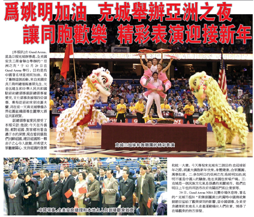 隨着中美兩國人民互相瞭解的加深, 中國農曆新年節日已經成爲廣受中、美百姓喜愛的極具美國籃球文化特色的NBA聯盟傳統賽事,每年都會有中國企業聯手美國本地機構通過各種形式迎新春歡度中國新年。