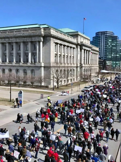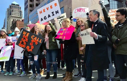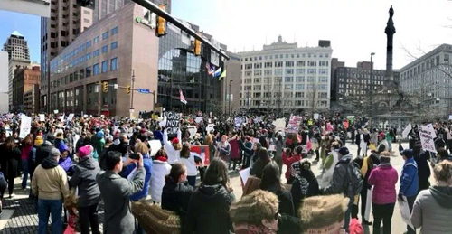 2018年3月24日周六上午11點,成千上萬的人聚集在克利夫蘭的公共廣場參加題爲"爲了我們的生命"的集會遊行,要求國會議員在大規模槍擊案發生後就槍支改革採取行動。